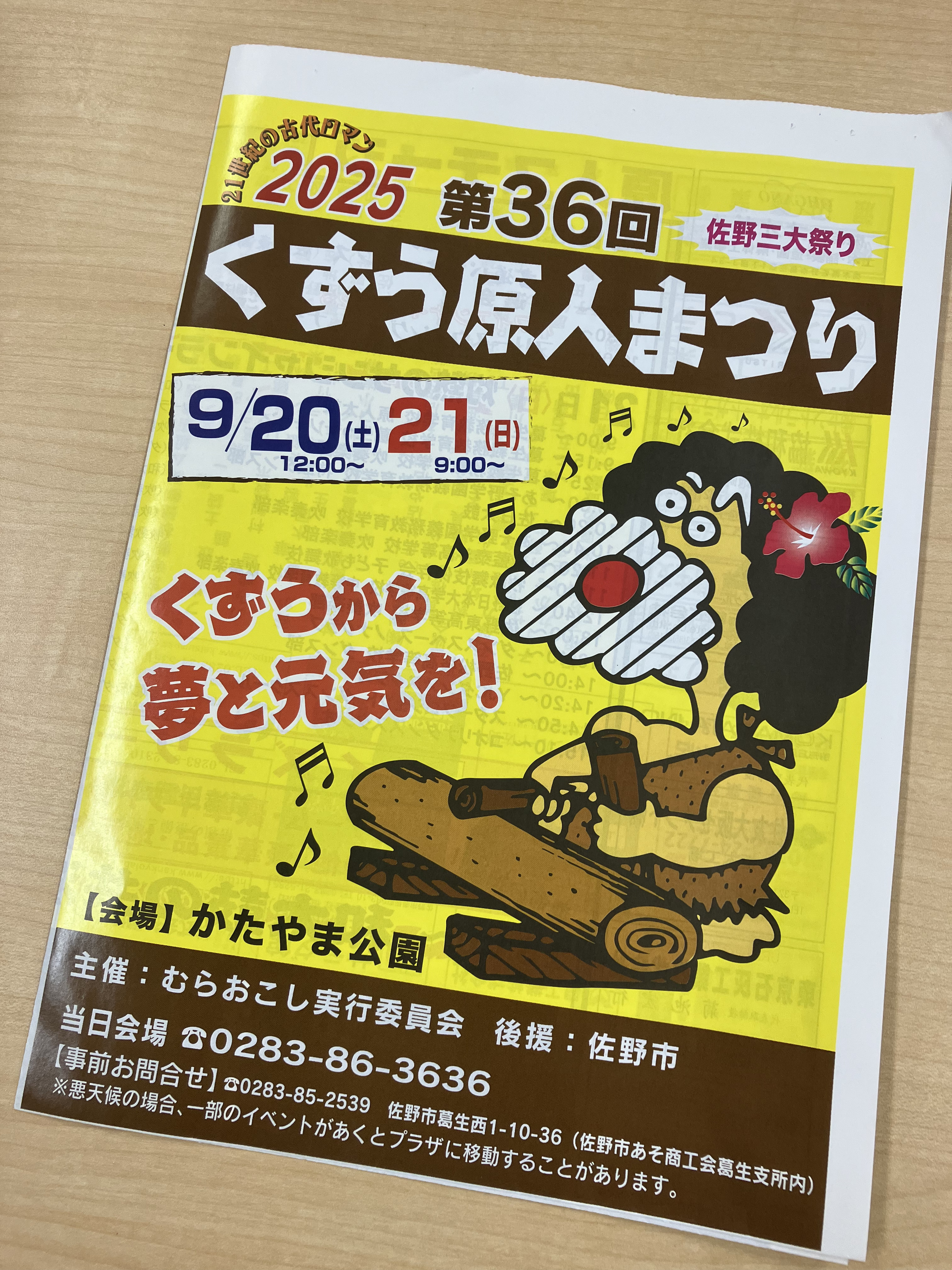 このたび当法人は、栃木県佐野市葛生地区で開催される「くずう原人まつり」に協賛いたしました。